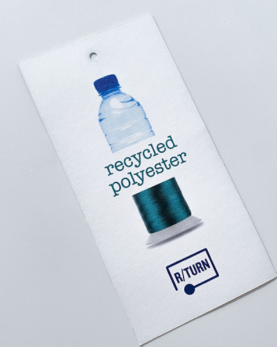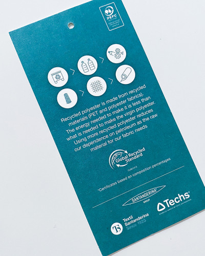 Carton label designed to be used on garments made of SEAQUAL, it will help to add value by highlighting the importance of the fabrics SEAQUAL, which is the solution to marine litter pollution and the destruction of our oceans. The label displays that the product contains upcycled marine plastic.