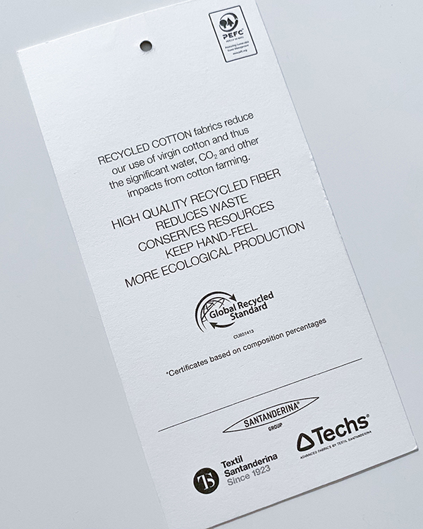 RECYCLED COTTON fabrics reduce our use of virgin cotton and thus the signifi cant water, CO2 and other impacts from cotton farming.